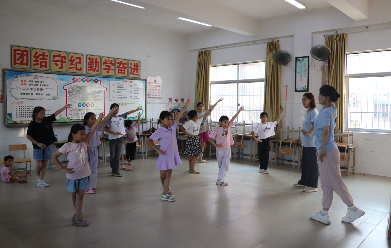 随后,团队师生在那床村小学与20余名员工见面,队员们纷纷展示自己的专业特长,小朋友们迅速地确定了自己学习的方向,合唱、舞蹈教学活动有序开展。